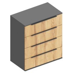 На всех изделиях ручками служат вырезы в фасадах, все выдвижные ящики имеют внутренние перегородки для лучшей организации хранения.