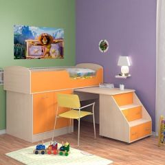 Кровать-чердак "Дюймовочка-2" подойдет детям от 1,5 до 10 лет. Кровать объединяет удобное спальное место, тумбу с полками для хранения вещей, письменный стол и лестницу, в ступеньках которой имеются вместительные ящики. Такой уголок экономит пространство в детской комнате, при этом обеспечивая все необходимые функции.