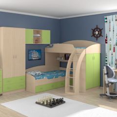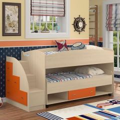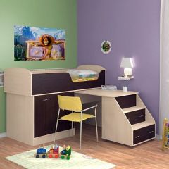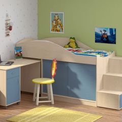 Кровать-чердак "Дюймовочка-2" подойдет детям от 1,5 до 10 лет. Кровать объединяет удобное спальное место, тумбу с полками для хранения вещей, письменный стол и лестницу, в ступеньках которой имеются вместительные ящики. Такой уголок экономит пространство в детской комнате, при этом обеспечивая все необходимые функции.