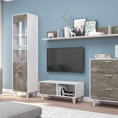 Модлуьная Гостиная Эго (бетон светлый/камень темный) на ножках