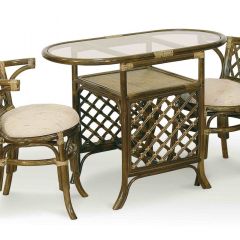 Комплект из ротанга: два кресла и узкий кофейный столик.