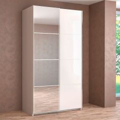 Иннэс-5 Шкаф-купе 2-х дв. 1400 (1дв. Ф1 - ЛДСП белый глянец, 1дв. Ф2 - зекрало)