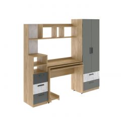 Шкаф оснащен удобными ящиками и полками, а также пространством для вертикального хранения вещей.