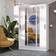В центральной части шкафа можно разместить сезонный гардероб, а в боковых отделах — верхнюю одежду.